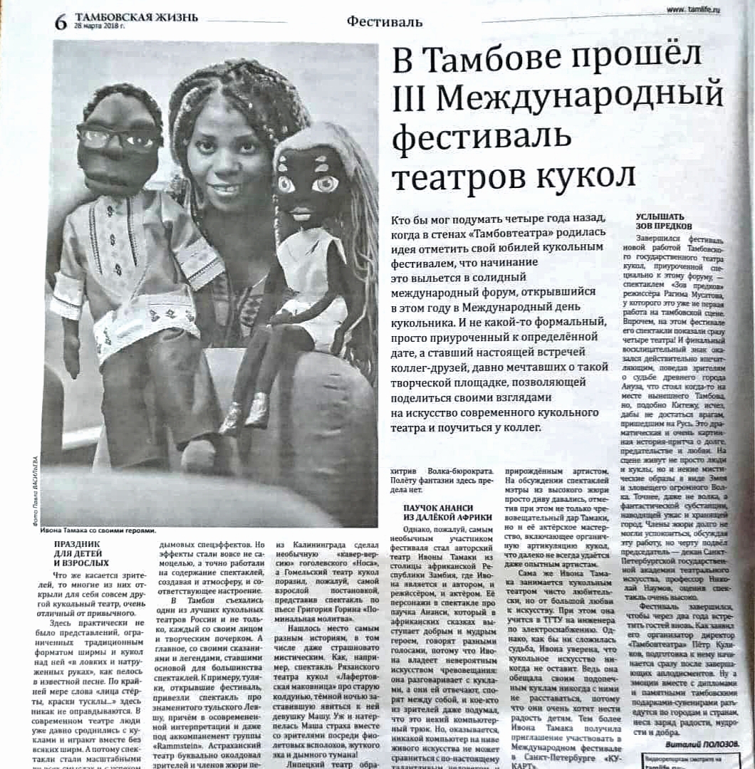 Тамака владеет редкой техникой чревовещания, которую она использует в своих кукольных представлениях на различных мероприятиях и фестивалях в России и Африке Обучаться этому искусству Тамака начала в Замбии. Когда усилась в Тамбове, работала в Государственном Тамбовском театре